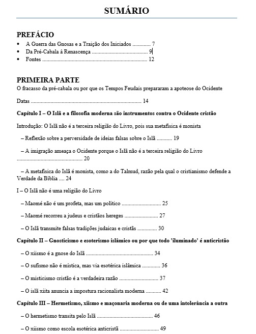 Neste segundo tomo da série A Guerra das Gnoses, Alain Pascal demonstra como o Islã e a Cabala, longe de serem tradições religiosas isoladas, partilham uma mesma raiz esotérica e anti-cristã, codificada no Talmud. Para o autor, o Islã não é a “terceira religião do Livro”, mas uma construção monista e política, um instrumento desde sua origem voltado contra a fé cristã e a civilização do Ocidente.