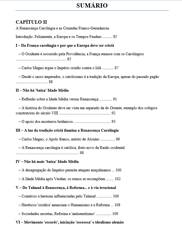 Partindo da Idade Média, Pascal analisa como a expansão islâmica foi contida pelos carolíngios e pelas Cruzadas, enquanto a Igreja combateu as heresias gnósticas e preservou a unidade do pensamento com a escolástica. Mas, a partir do século XII, a Cabala surge oficialmente como movimento esotérico e político, infiltrando universidades e mosteiros, preparando a subversão cultural da Renascença.